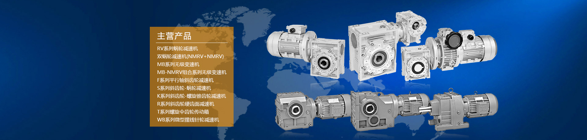 歐勝公司主要生產NMRV系列蝸輪蝸桿減速機,MB系列無級變速機,VF系列蝸輪桿減速機,X、WB系列擺線針輪減速機,F、K、R、S系列齒輪減速機,T系列螺旋傘齒輪轉向器、齒輪換向箱等十余個系列數百種規格的減速機產品。
